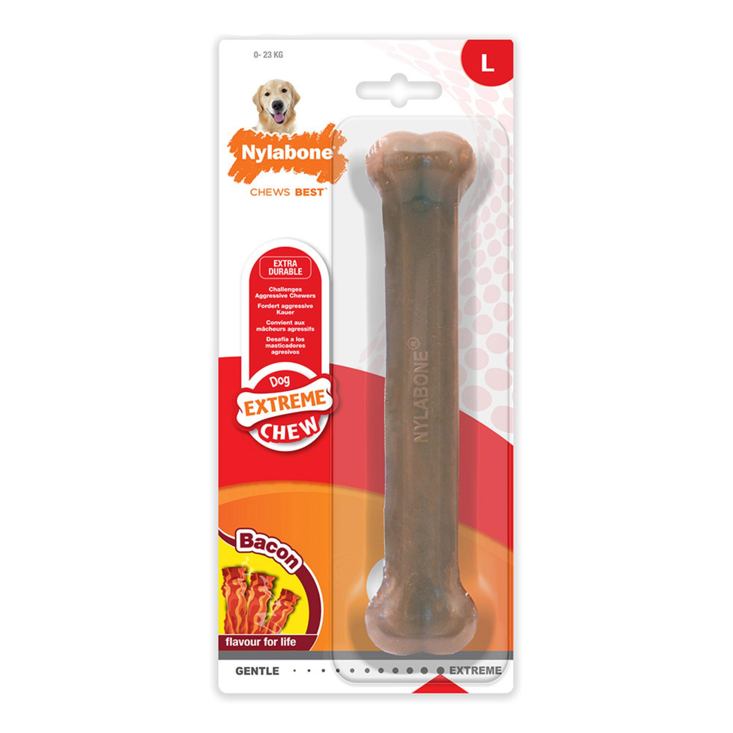 Made with a tough, durable nylon this toy was made with powerful chewers in mind. Its long lasting flavours and textured surface make it an engaging chew for your dog and their natural chewing instincts. The toy is designed to withstand hours of play, providing endless entertainment for your furry friend. Bacon flavour Helps clean teeth and freshen breath with every chew Ideal for large dogs up to 23kg. Return to Products