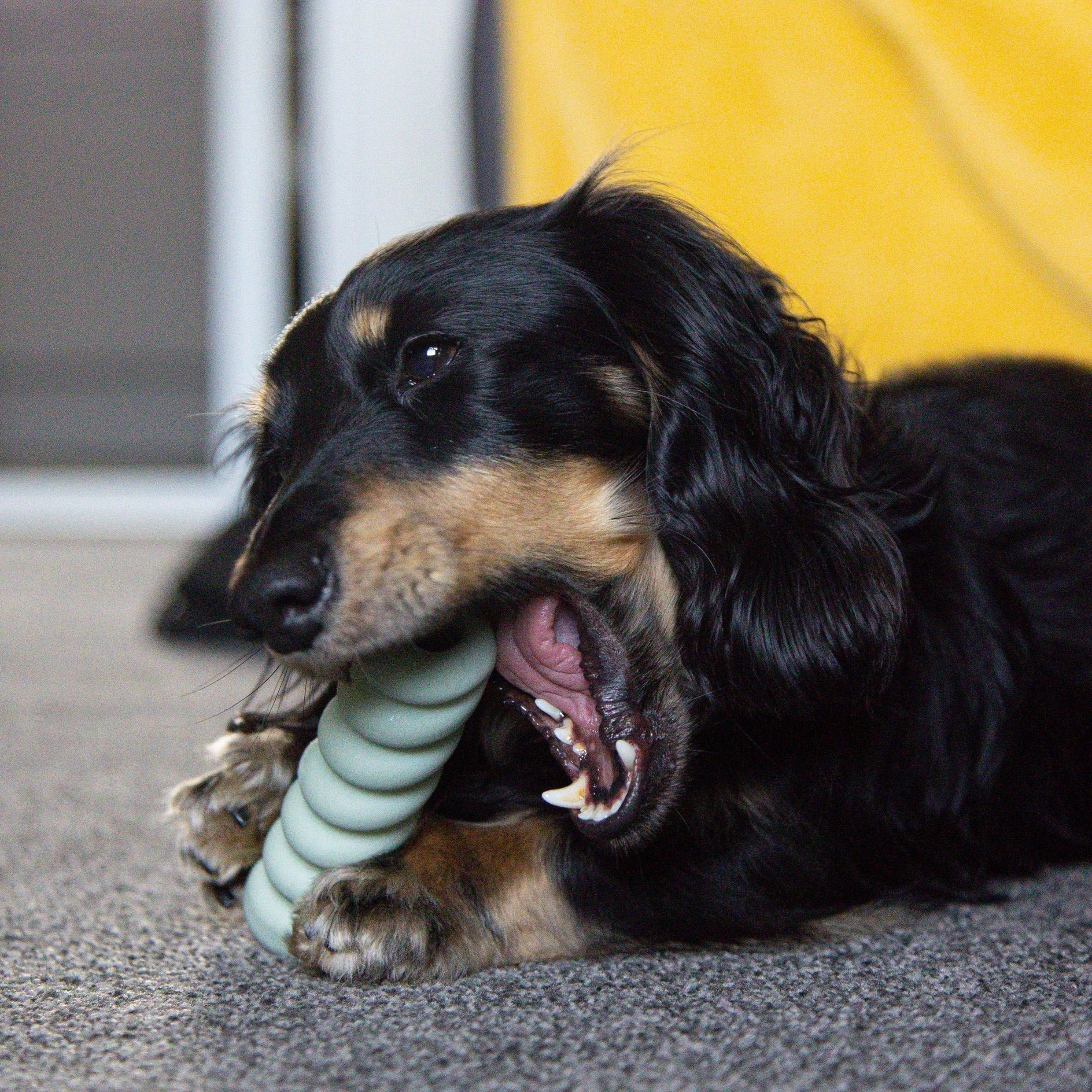 Give your pup the teething relief they need. Made from soft, comforting sensory material, this puppy ring is ideal for puppy teething pains and can be frozen fo extra soothing. Also, the unique two bone design is great for reaching the back teeth. Peanut Butter flavour. Helps clean teeth and freshen breath with every chew. Ideal for small puppies up to 11kg. Return to Products