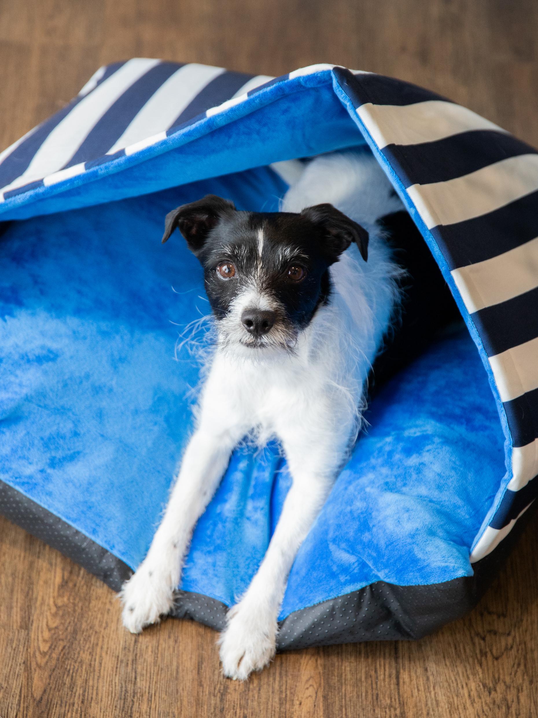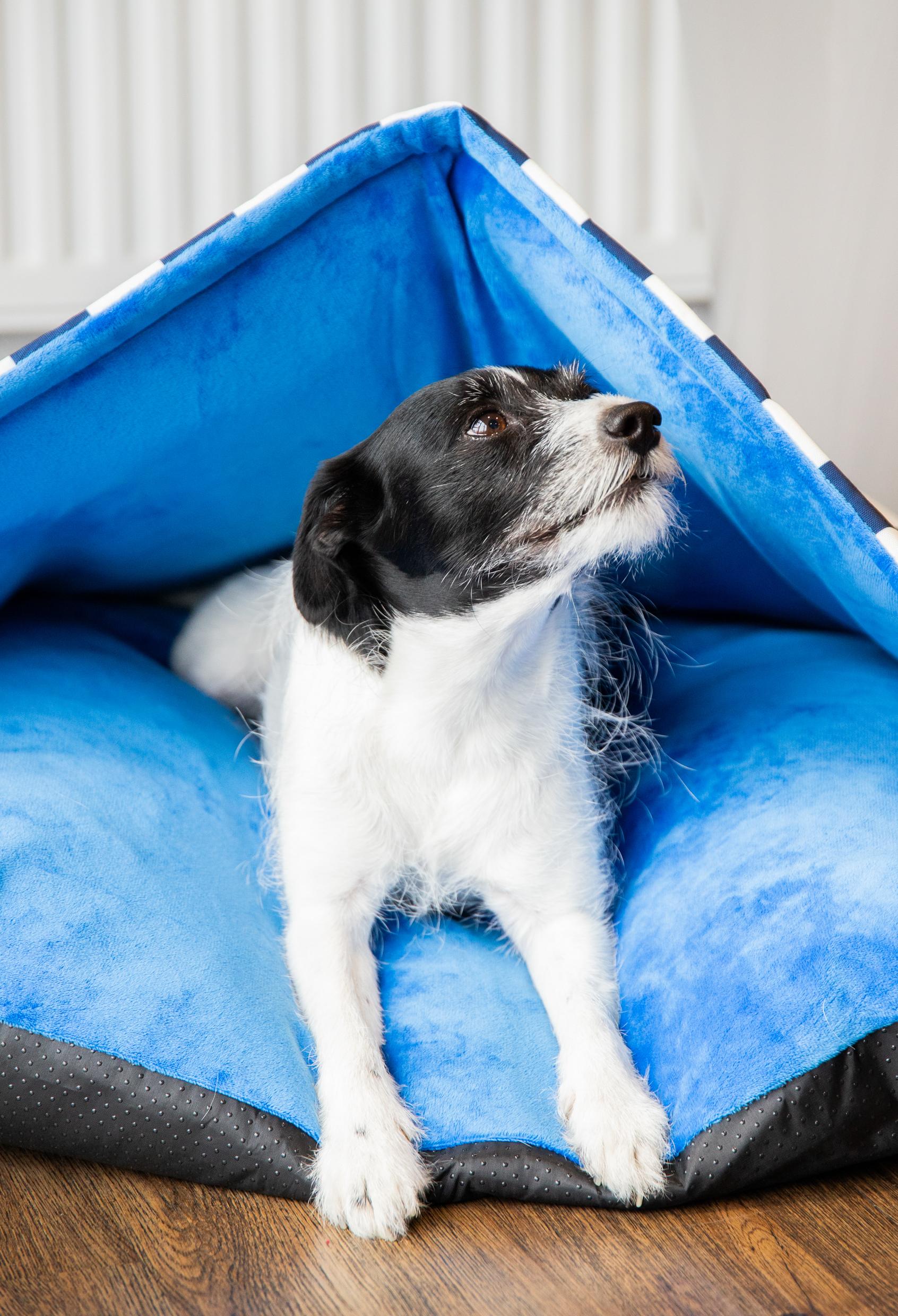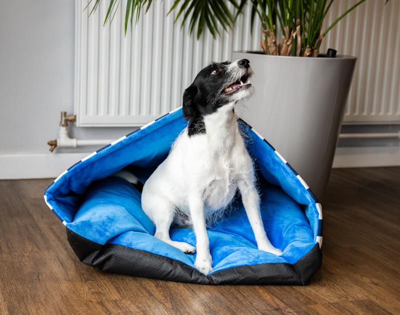 "Eye-catching blue canvas outer with playful dopamine-inspired stripes Soft, plush inner brings a blueberry pop Cosy canopy lets pups dive in and hideout Easy care materials - Durable canvas outer and removable outer cover for easy maintenance" Return to Products