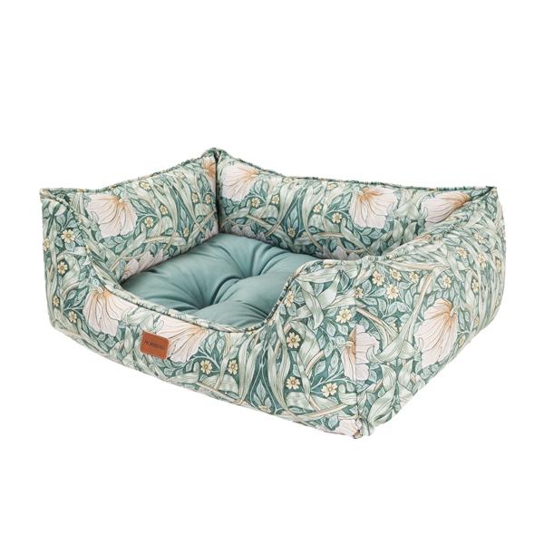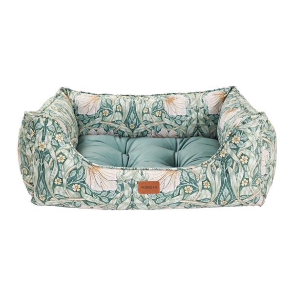 Iconic William Morris Pimpernel print with elegant floral design. Reversible cushion with super soft, luxurious fabric for comfort and style. Padded sides for support and a cosy rest spot.  Three sizes fit most dogs and cats. Stylish heritage look with everyday practicality. Full removable machine washable cover.