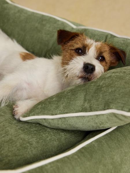 a vibrant colour and elegant contrast piping, this bed is a stylish addition to any home. Crafted from sumptuously soft material, it features a plush cushion for exceptional comfort and is finished with subtle Joules branding, ensuring your furry friend rests in luxurious style.